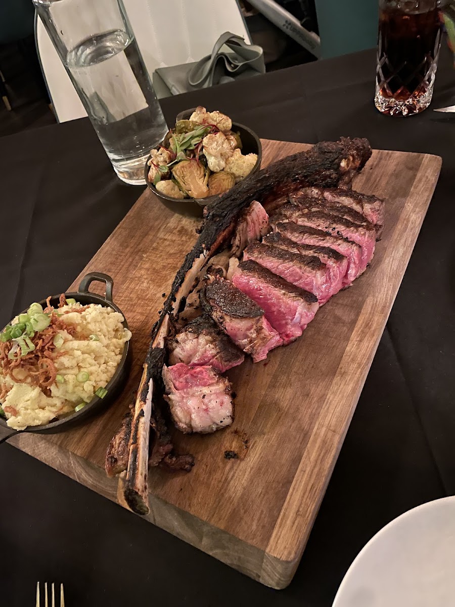 Wonderful dining experience . Safe to say that it has many variations on steaks from tomahawk to aged ribeye. I enjoyed the beef short ribs and my wife had the prime rib eye. Sides are ordered separately and serve two. Some dishes come with sides. Great bar. Two hours of free parking, but I would download app for peace of mind. After 8 I think you’re in the clear but enforcement was out at 530pm. They have a very cool chefs table for large groups. Decor is classy.